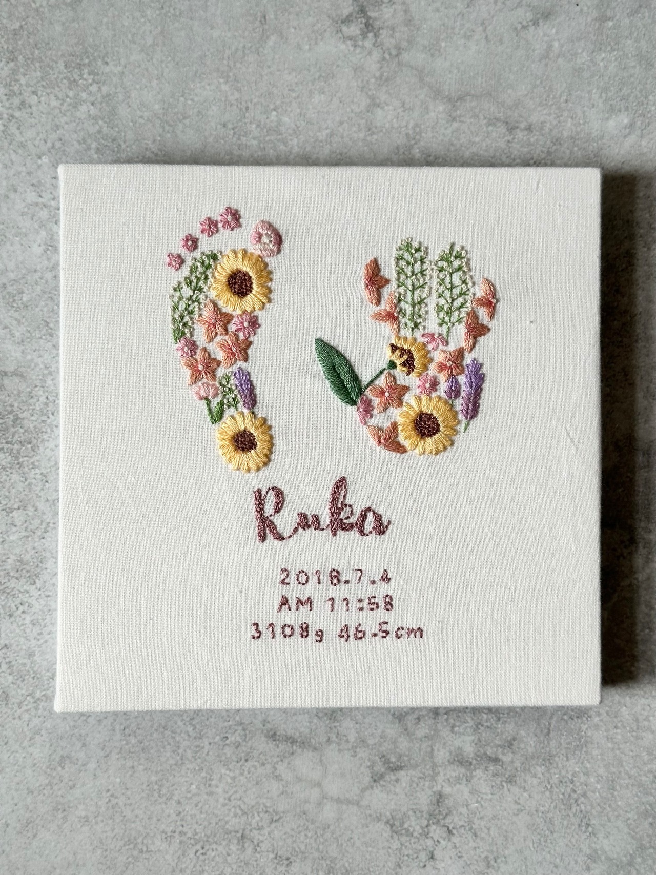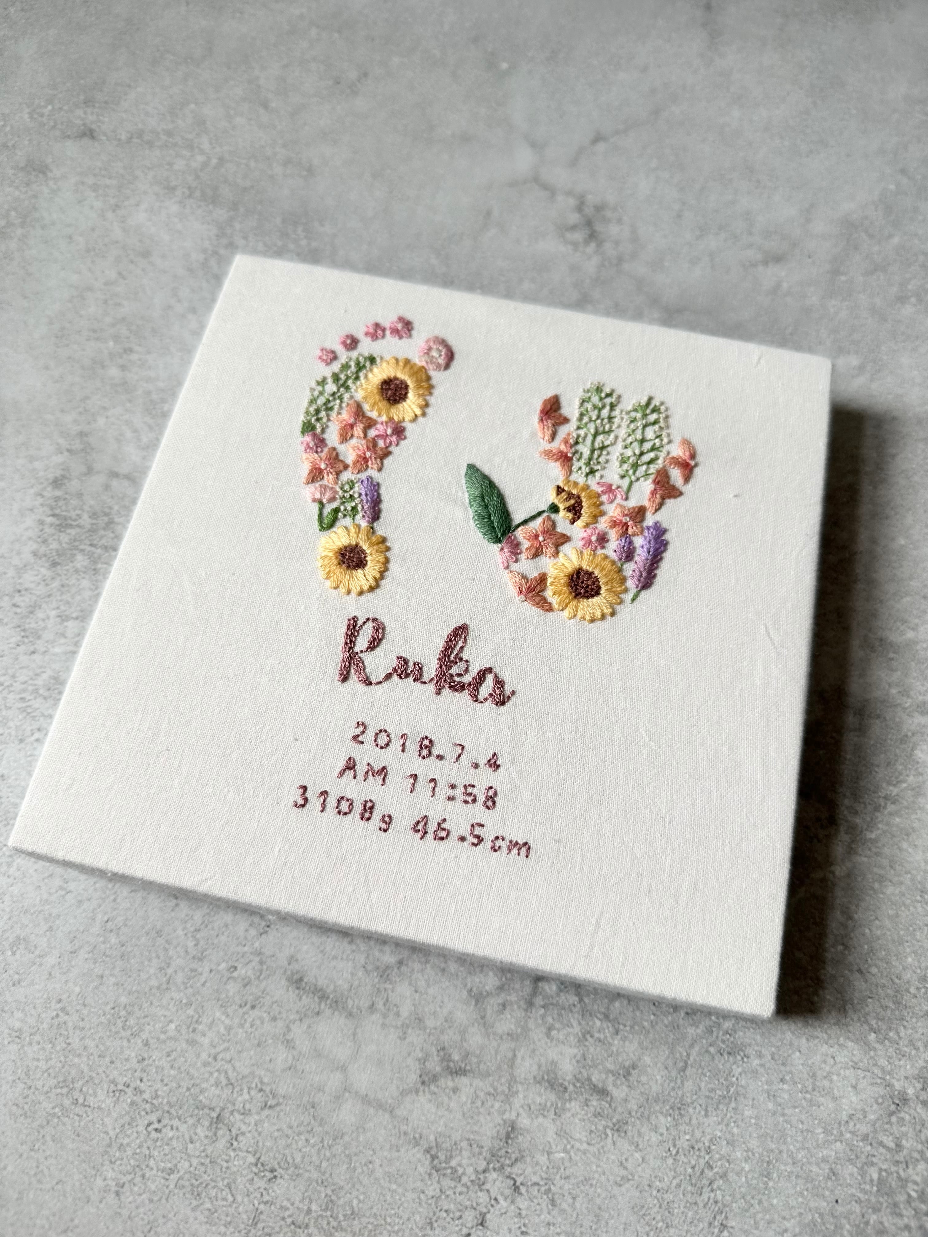 手足型刺繍ボード《夏の花束デザイン》15×15サイズ 命名書 出産祝い