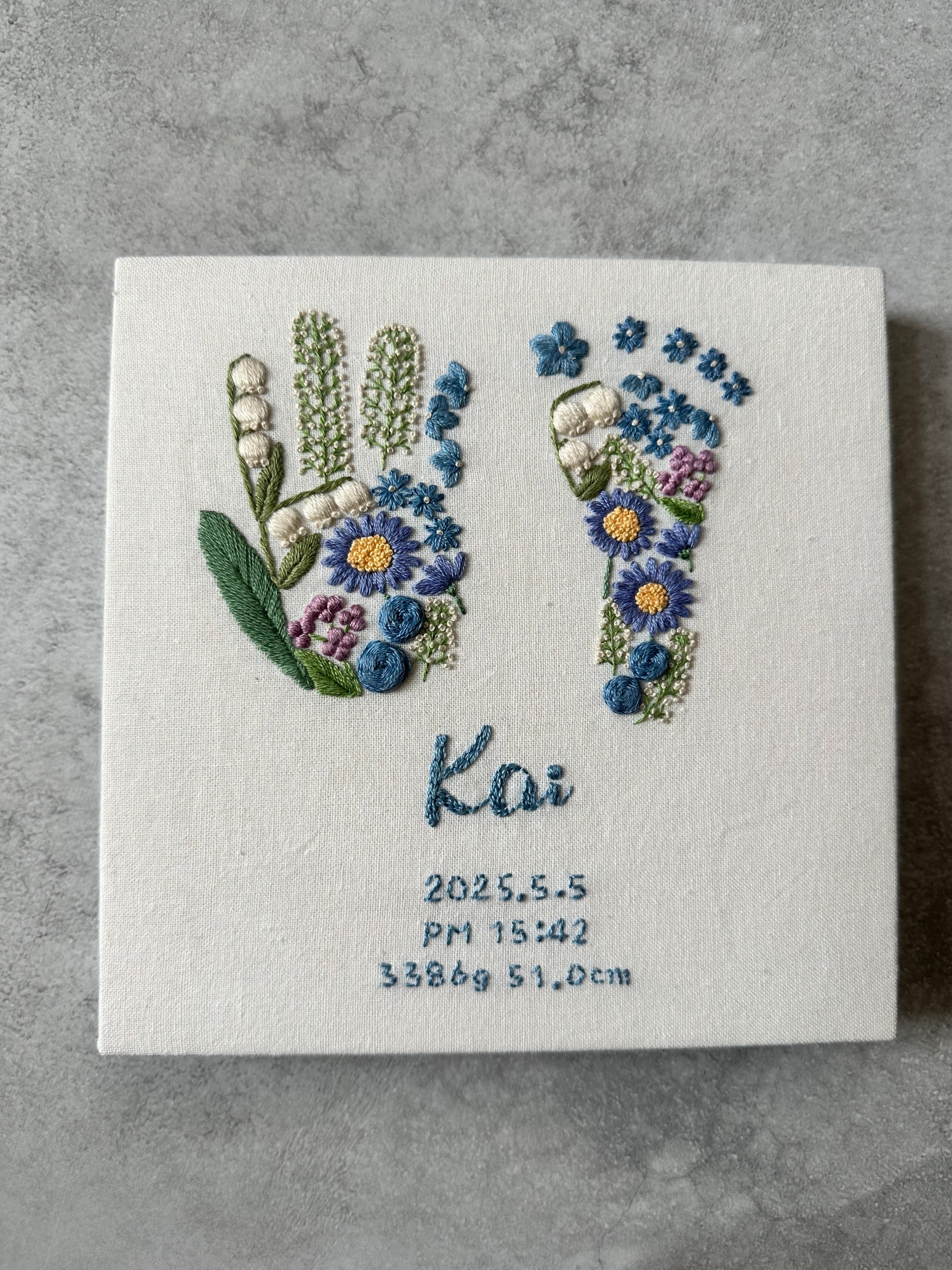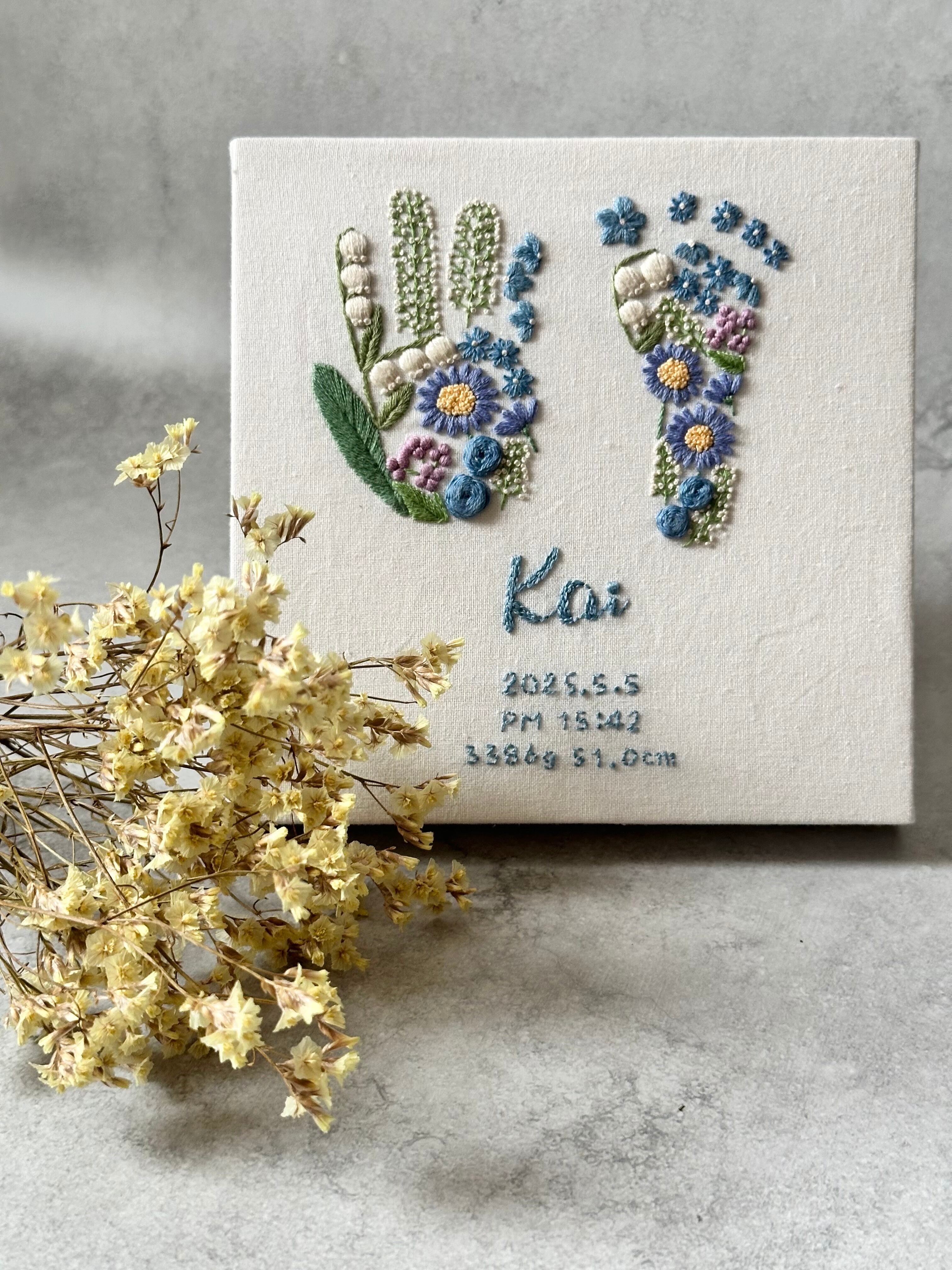 手足型刺繍ボード《幸福の花束デザイン》15×15サイズ 命名書 出産祝い